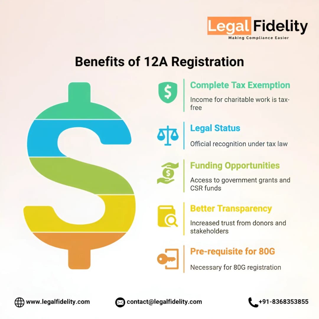 - Needed for Other Registrations: 12A is the first step before applying for 80G, CSR 1, and even FCRA to receive foreign funding.