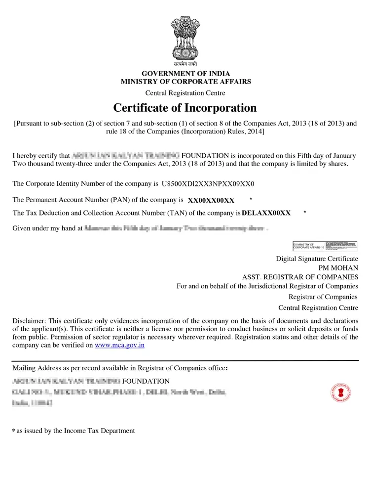 It gives your Section 8 Company a legal identity, ensures proper record keeping, and compliance procedures. - Ministry of Corporate Affairs (MCA)